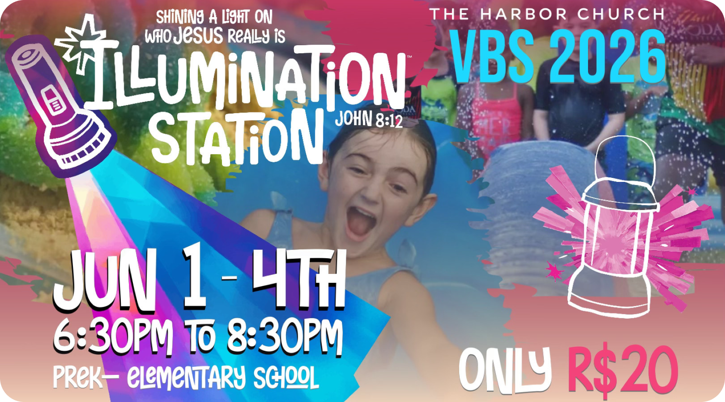Get ready for an unforgettable week at The Harbor Church! Illumination Station VBS 2026 is a high-energy, joy-filled experience where kids from PreK through elementary school will have a blast while discovering who Jesus really is and how to shine His light in their everyday lives.