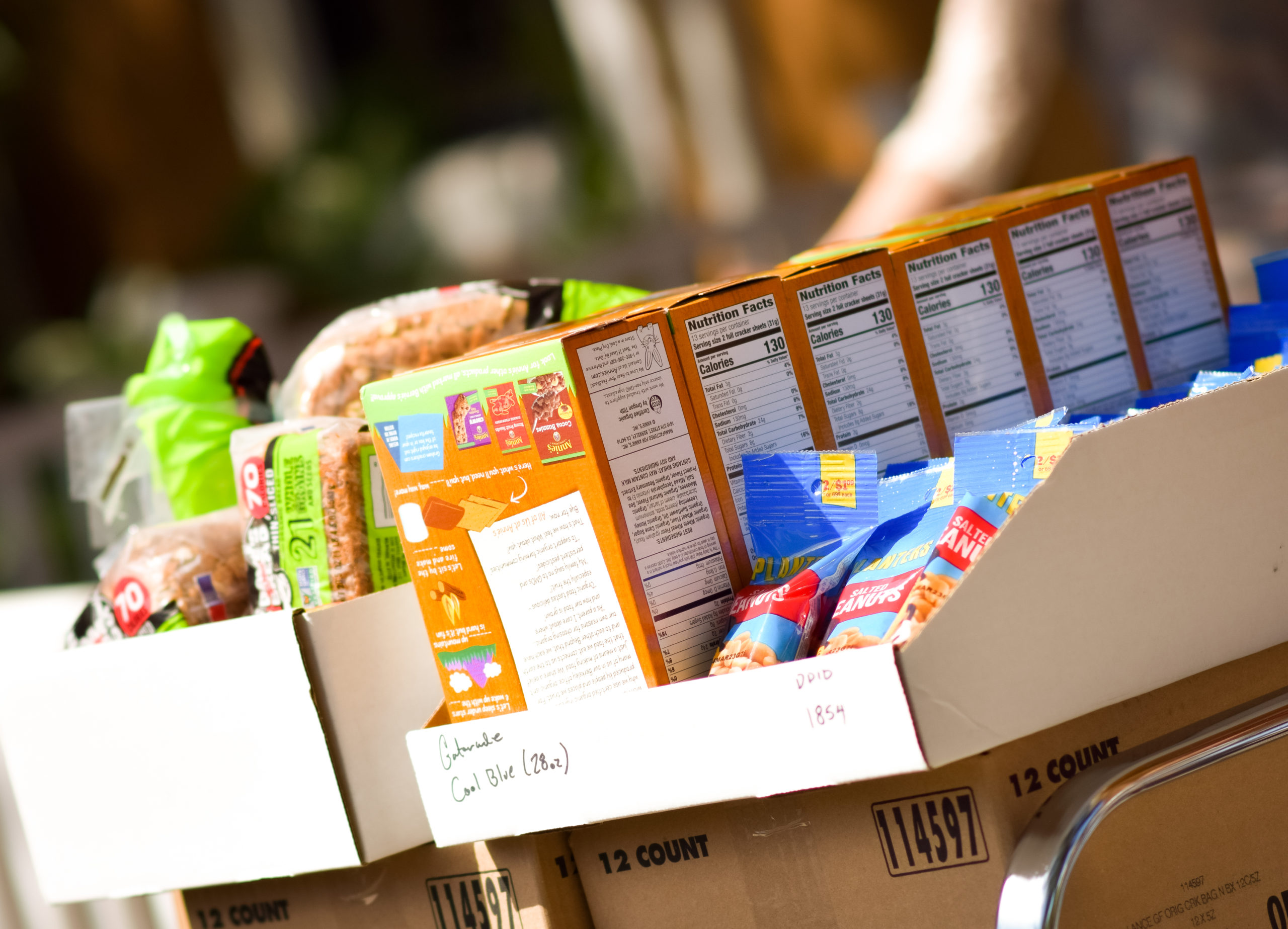 The blue donation bins will be outside the front doors to the student building Monday through Thursday, and Sunday mornings.